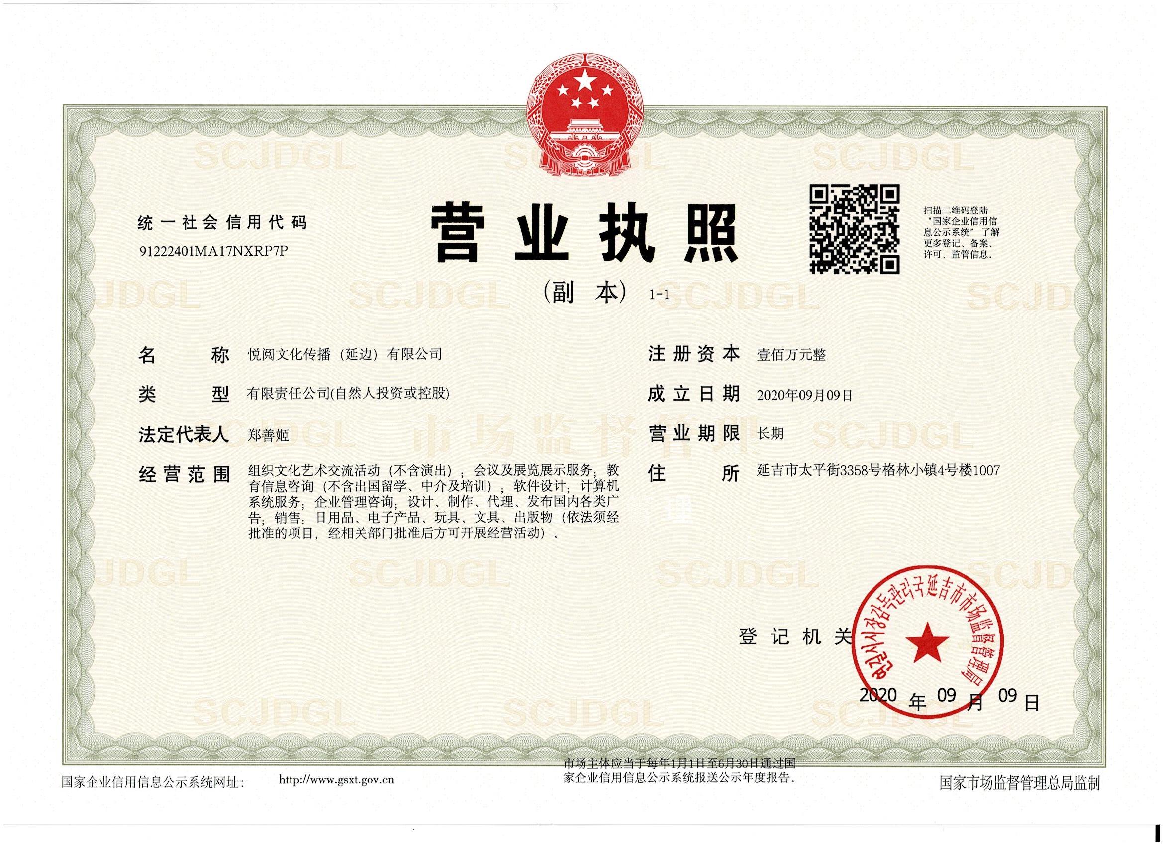 戶名:悅閱文化傳播(延邊)有限公司